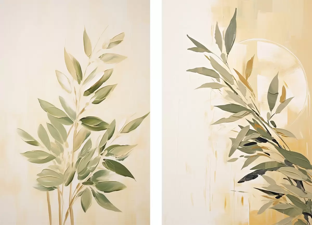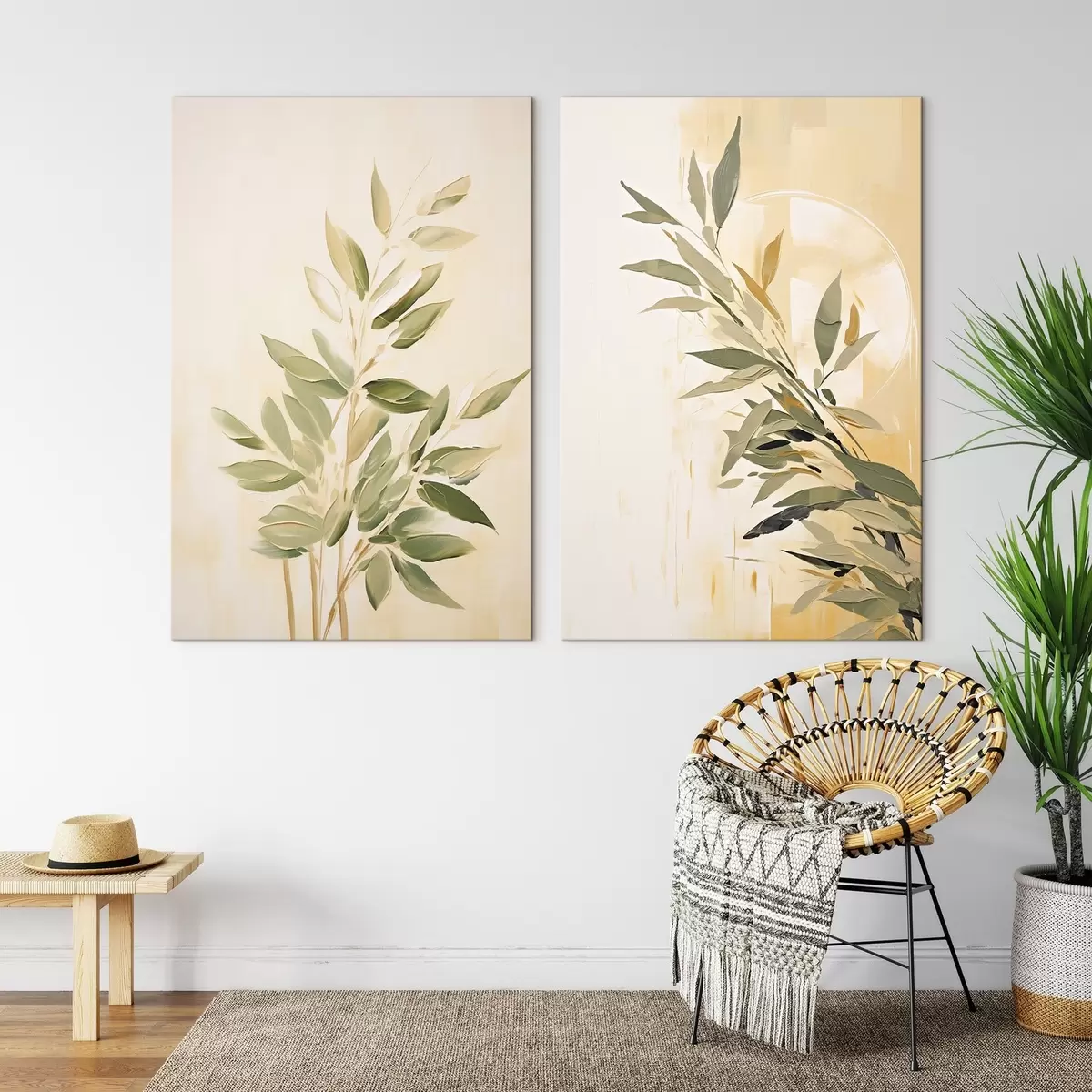 Wandbilder Botanischer Zweig mit grünen Blättern auf einem warmen Hintergrund m00686