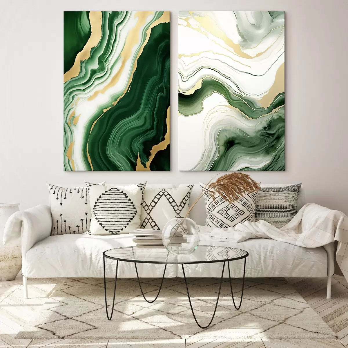 Wandbilder Grüne und weiße Marmortexturen mit orange-gelben Adern Art. m00688