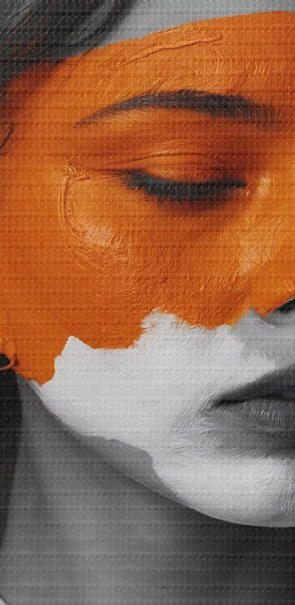 Wandbilder Porträts von Mädchen mit abstrakten orangefarbenen Pinselstrichen Art. m00693