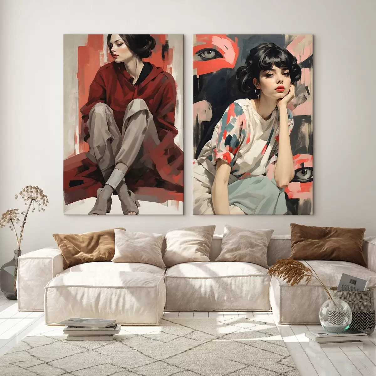 Wandbilder Porträts von Mädchen in roten und beigen abstrakten Stilen m00695