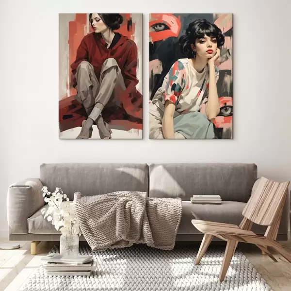 Wandbilder Porträts von Mädchen in roten und beigen abstrakten Stilen Art. m00695