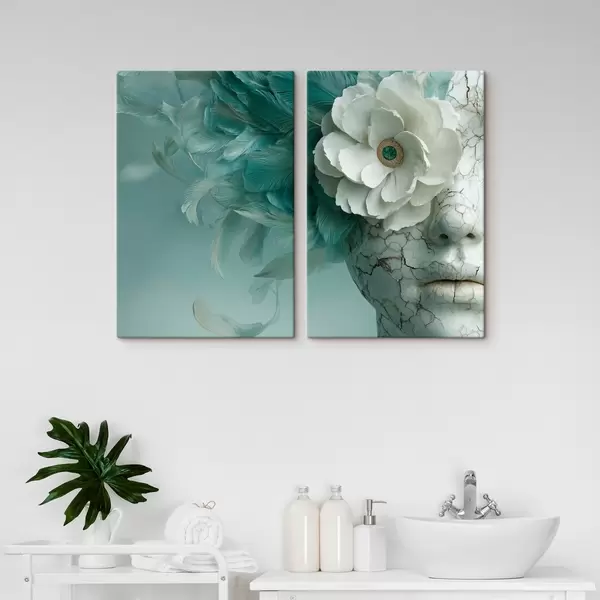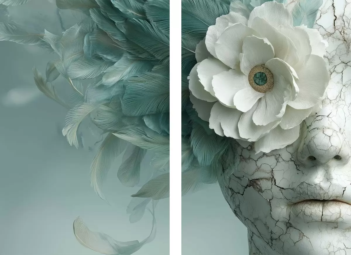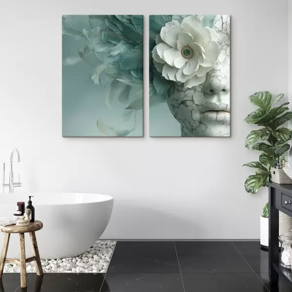 Wandbilder marmorgesicht eines Mädchens mit einer Blume und Federn Art. m00699