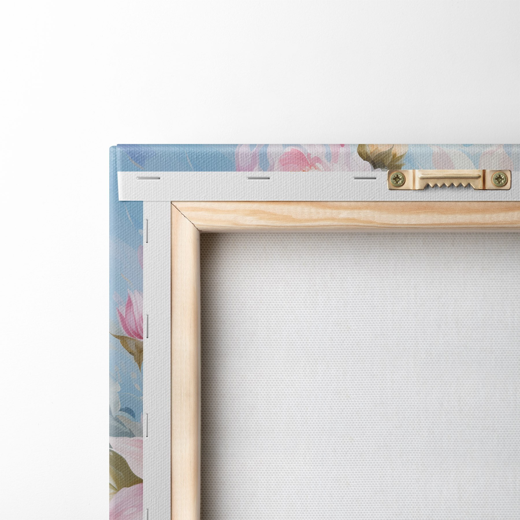 Um die Leinwand auf Keilrahmen zu spannen, ohne das Bild zu beschädigen, verwenden wir ein gespiegeltes Bild.
