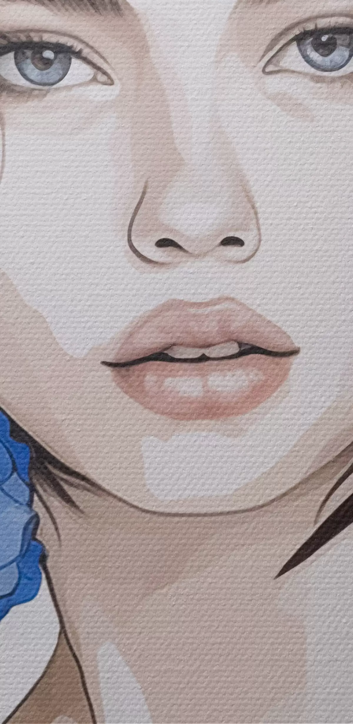 Wandbilder Porträt eines Mädchens mit blauen Blumen Art. m00721