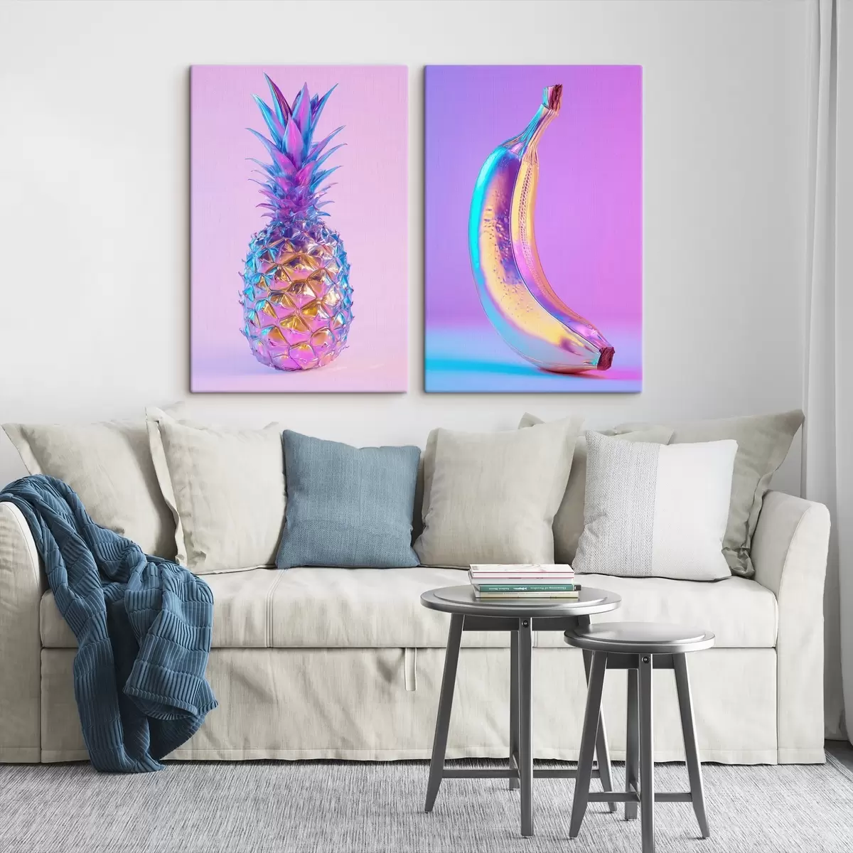Wandbilder leuchtend glänzende Ananas und Banane im Pop-Art-Stil Art. m00737