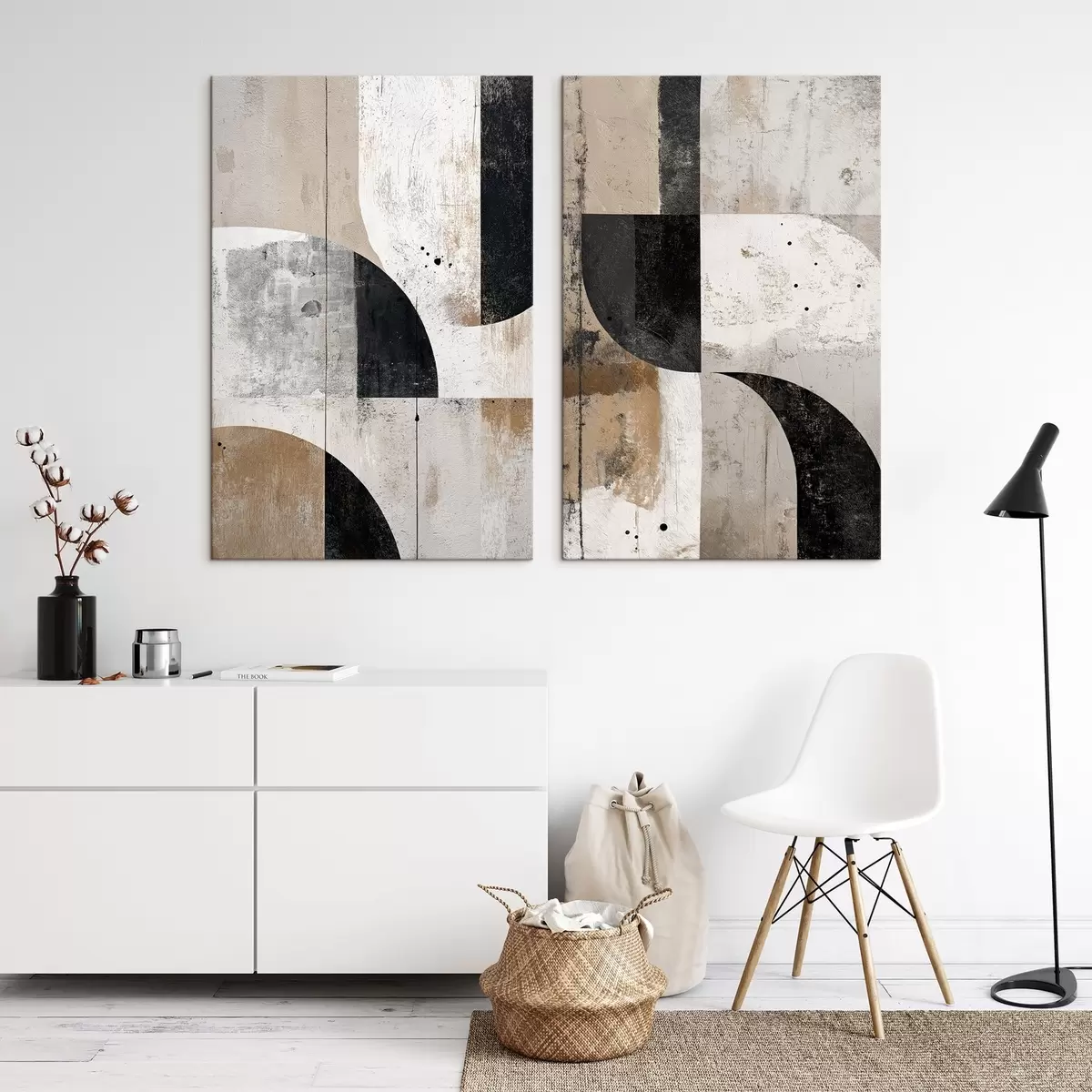 Wandbilder Geometrische Formen in Beige- und Schwarztönen Art. m00750