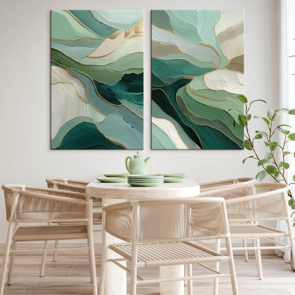 Wandbilder Smaragdgrüne Schichtabstraktion mit gelbem Umriss Art. m00766