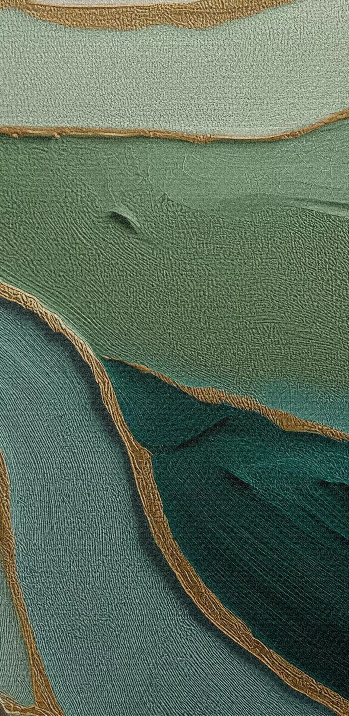 Wandbilder Smaragdgrüne Schichtabstraktion mit gelbem Umriss m00766