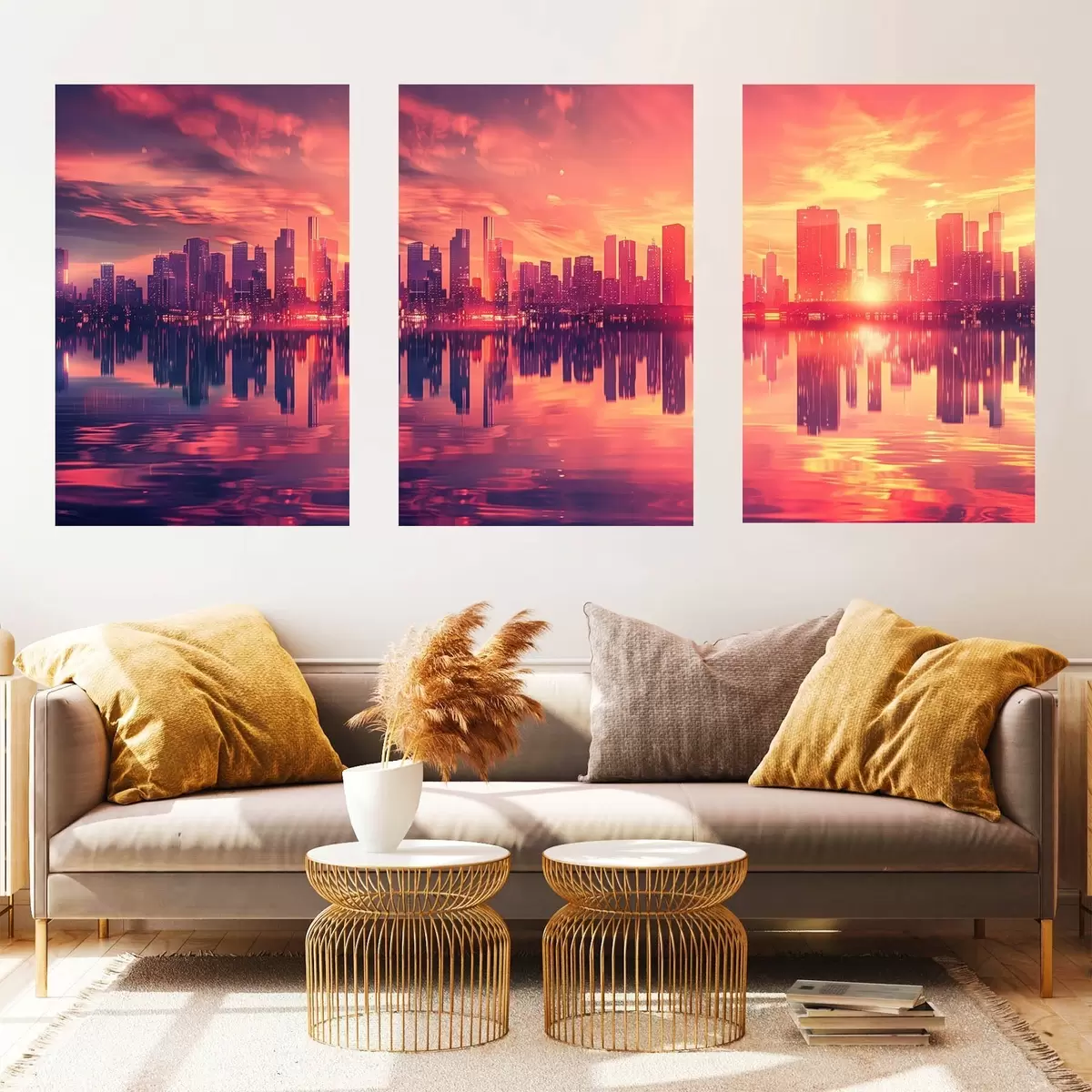 Wandbilder Romantischer Sonnenuntergang mit einer modernen Stadt im Hintergrund Art. m00784