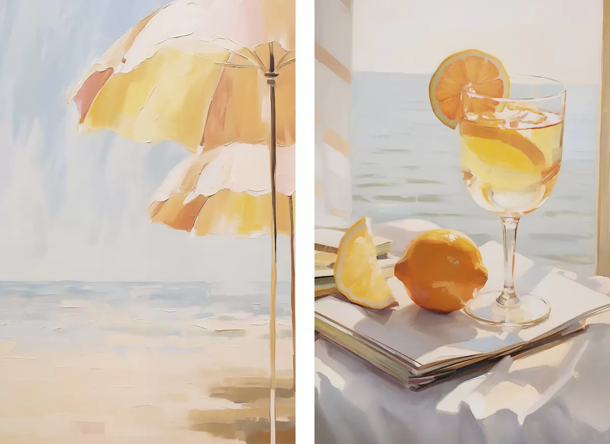 Wandbilder Strandlandschaft und Cocktail im Glas Art. m00793