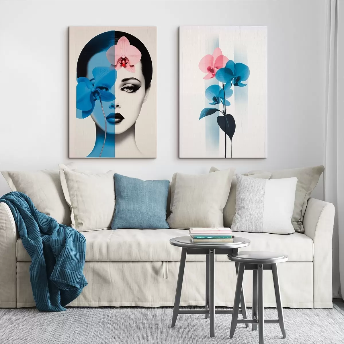 Wandbilder Abstraktes Kunstporträt einer Frau mit Orchideen Art. m00818