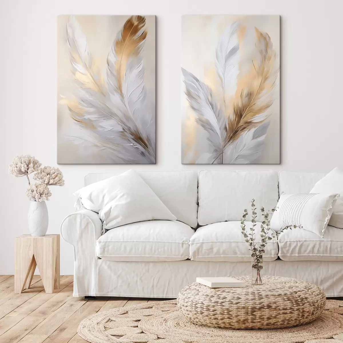 Wandbilder Federn mit orangefarbenen Akzenten, strukturierte minimalistische Komposition, moderne Kunst Art. m00828