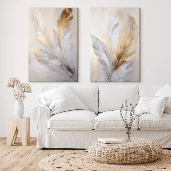 Wandbilder Federn mit orangefarbenen Akzenten, strukturierte minimalistische Komposition, moderne Kunst Art. m00828