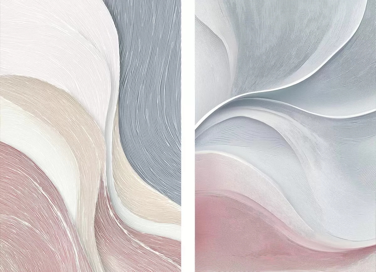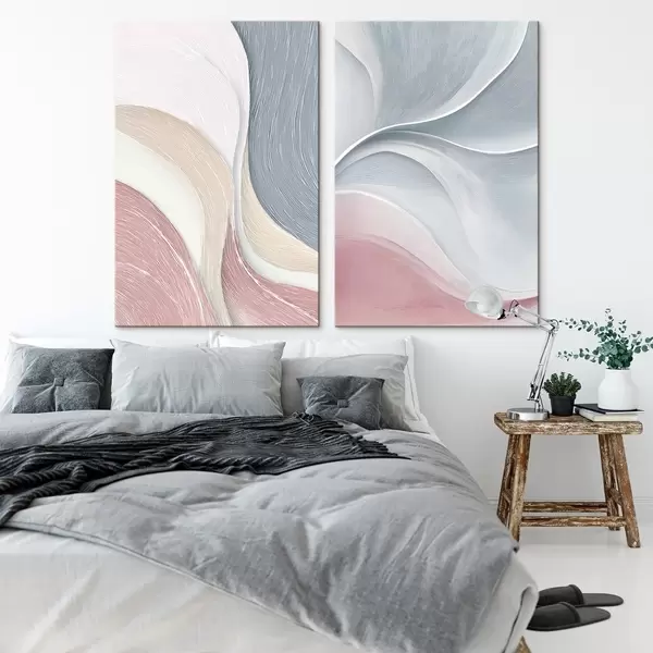 Wandbilder Abstrakte Wellen in Rosa-Beige-Blau-Tönen m00874