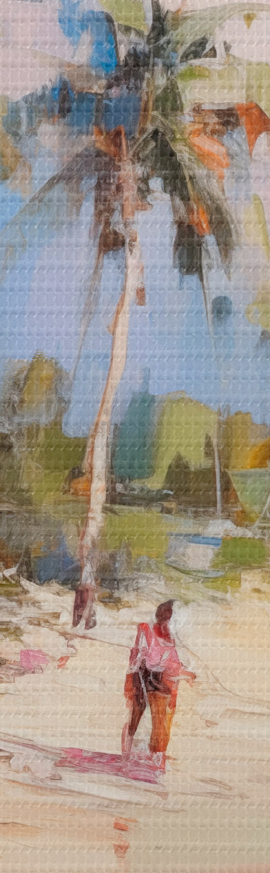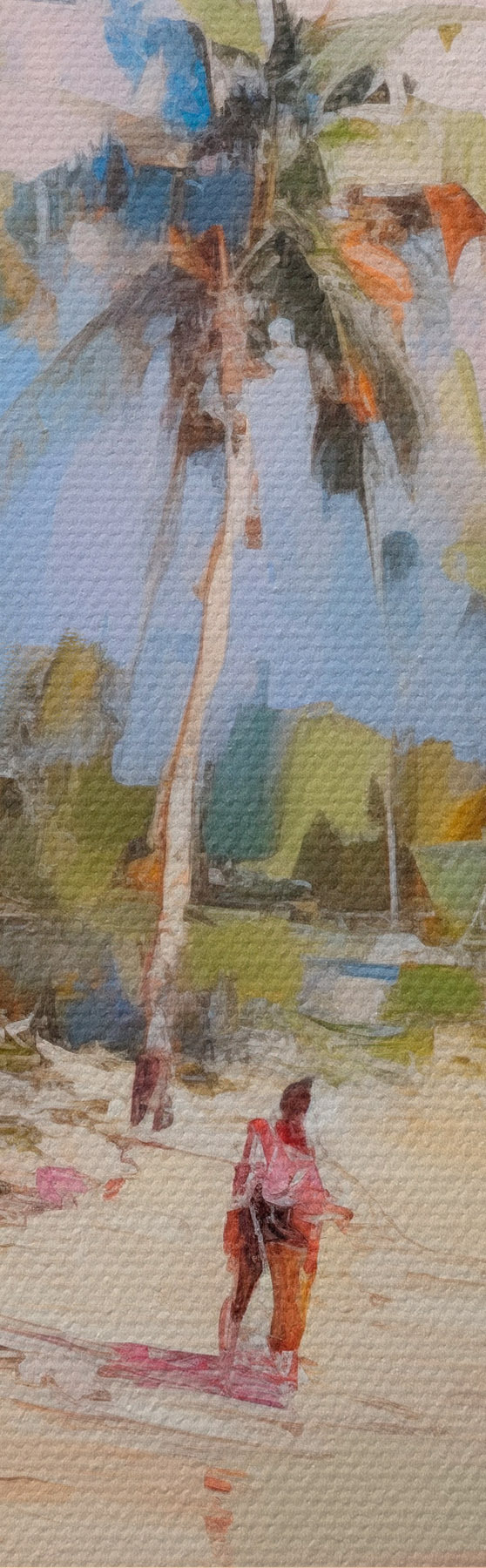 Wandbilder Abstrakte Landschaft, ein Strand mit Palmen, strahlender Sonnenschein mit blauem Himmel und einigen Wolken Art. m00885