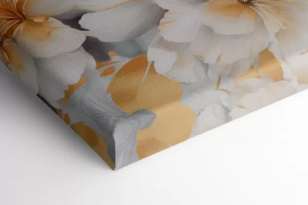 Wandbilder Weiße Blüten mit gelben Details, Blütenblätter mit dezenten Schatten, heller Hintergrund mit dezentem Marmoreffekt Art. m00889