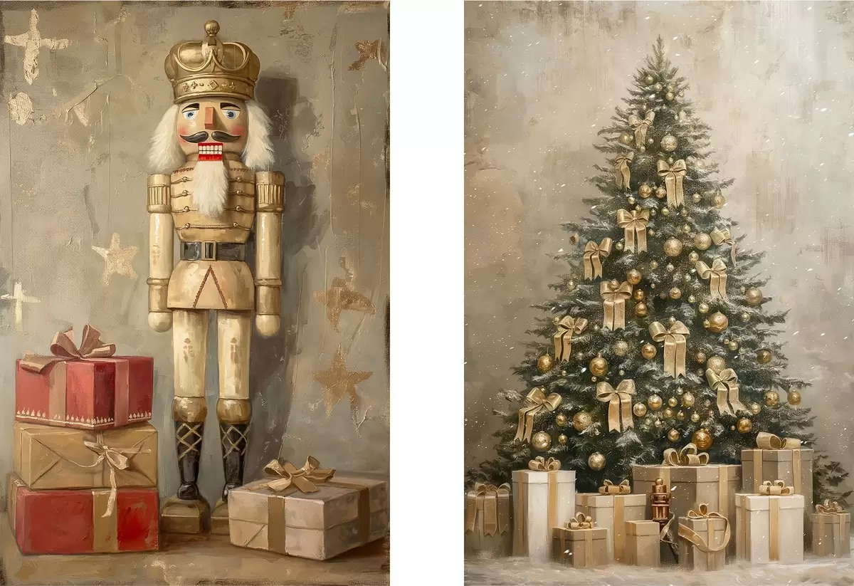 Wandbilder Der Nussknacker und der Weihnachtsbaum mit Geschenken m00957