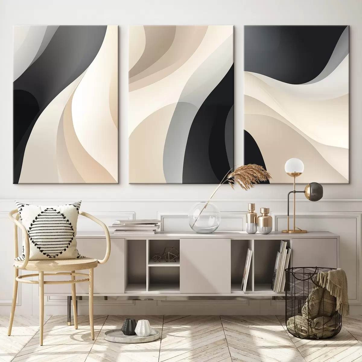 Wandbilder Minimale fließende Kurven in Creme, Taupe und Schwarz Art. m00962
