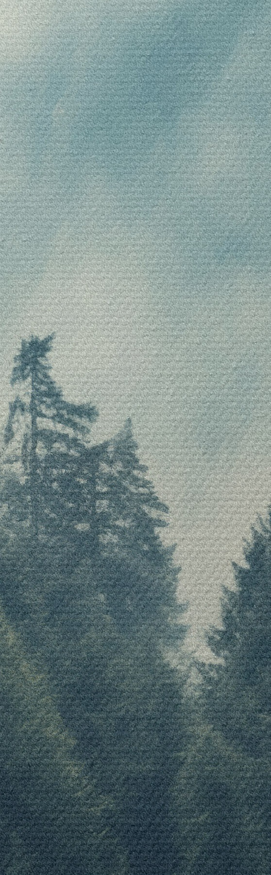 Wandbilder Nebelverhangene Kiefernberge in sanften Grün- und Blautönen m00964