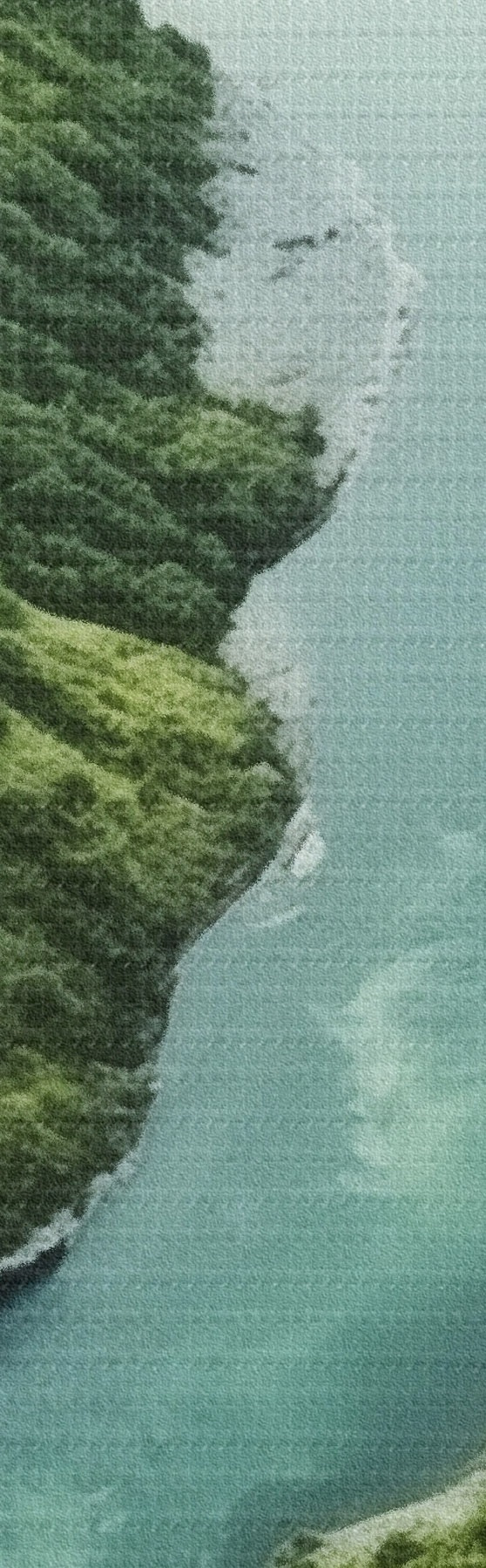Wandbilder Luftbild einer Flussschlucht und eines nebligen Viadukts inmitten grüner Hügel m00967