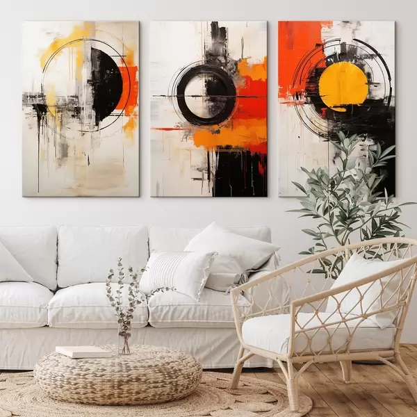 Wandbilder Strukturierte Kreise und kräftige Striche in Schwarz, Ocker und Orange Art. m00974