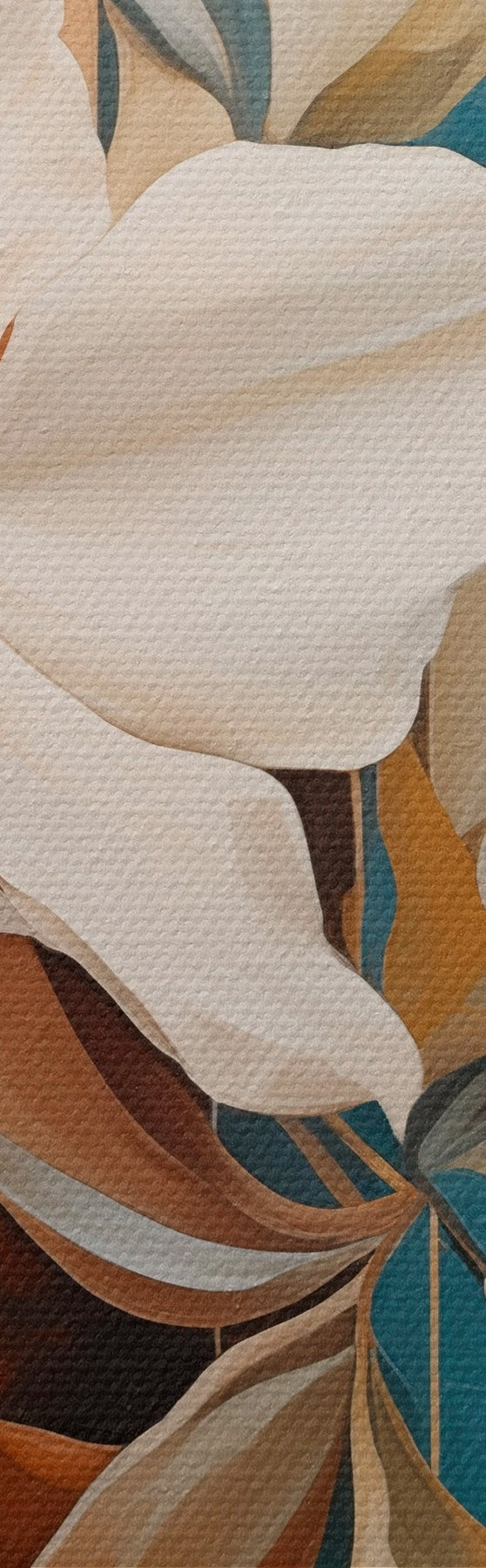 Wandbilder Abstrakte weiße Blumen und Blätter vor einem Hintergrund aus Braun und Blau mit abstrakten Formen, in minimalistischem Stil Art. m01015