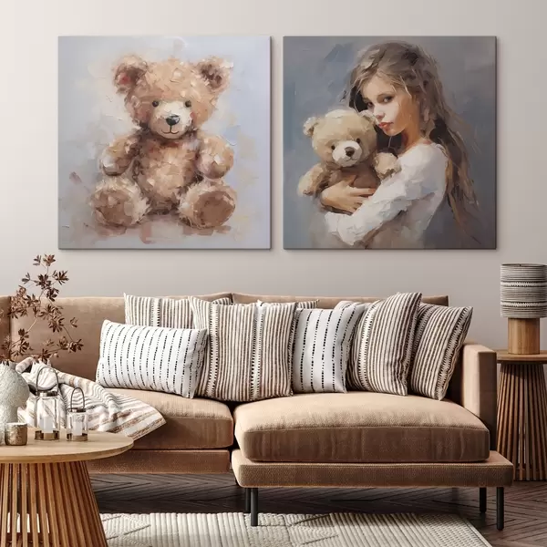 Wandbilder Mädchen mit einem Spielzeugbären, Gemäldeimitation Art. m01029