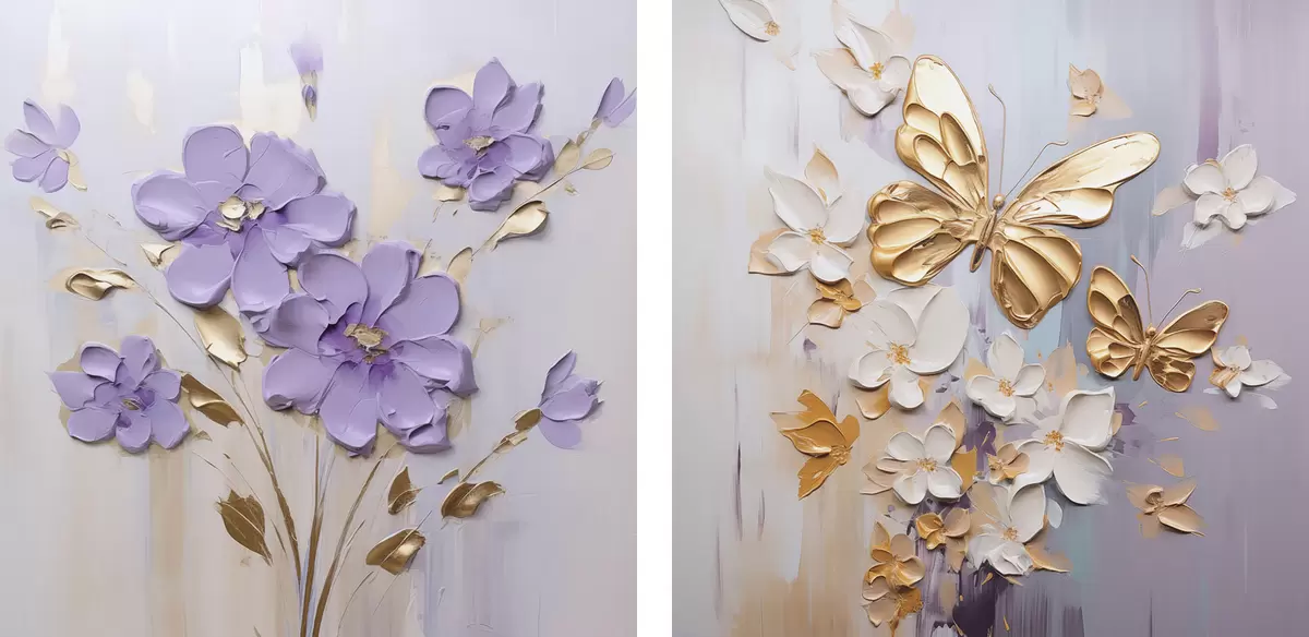 Wandbilder Schmetterlinge und Blumen Imitationsmalerei Art. m01046