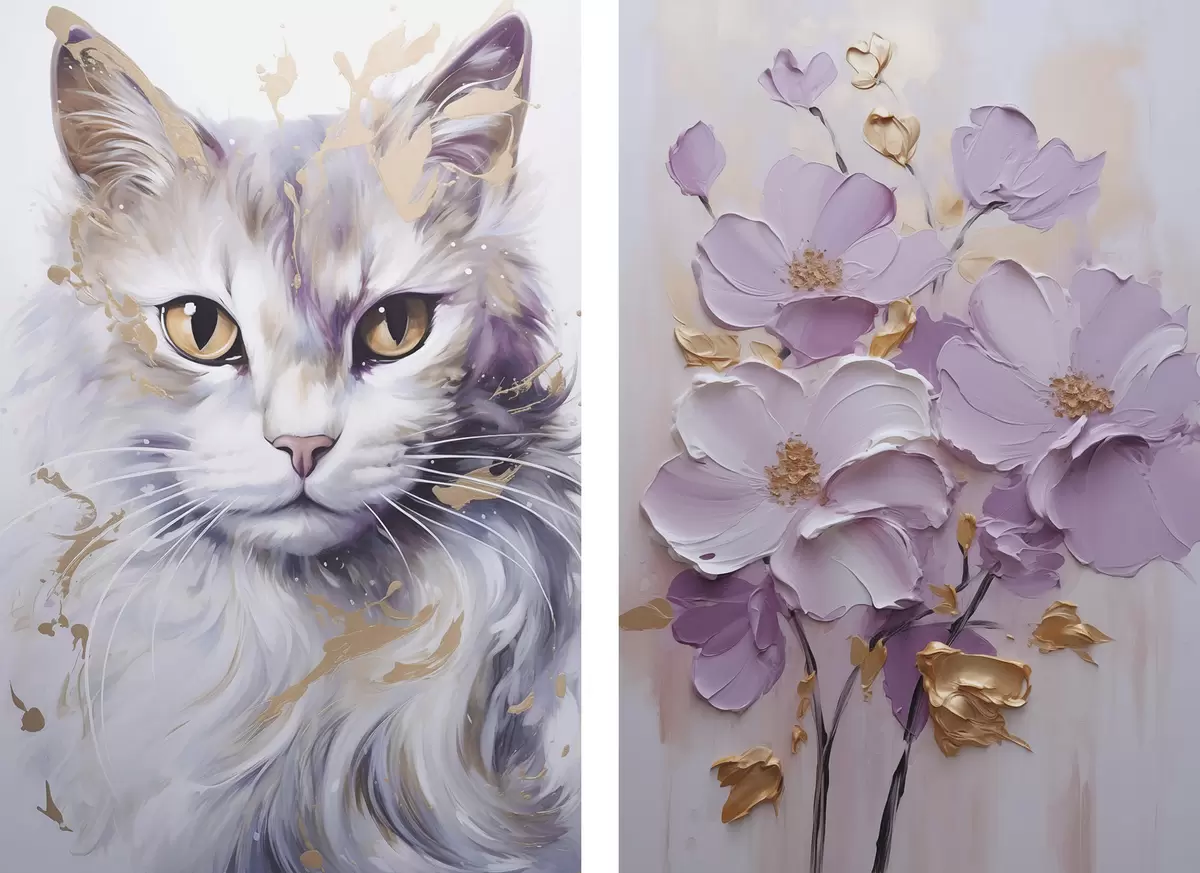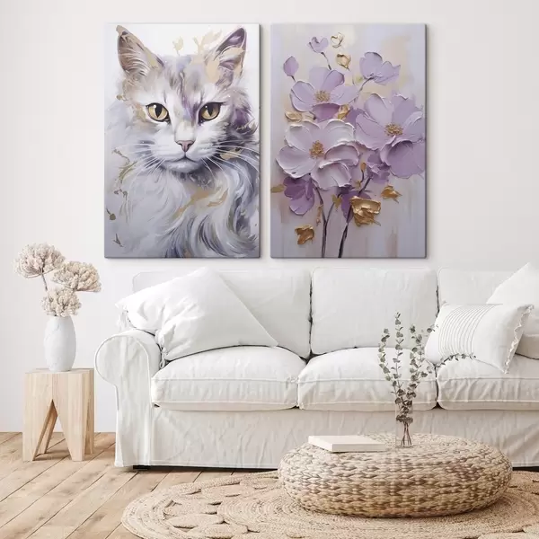 Wandbilder Abstrakte Blumen und eine Katze Art. m01056