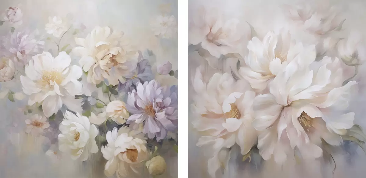Drei Materialtypen stehen zur Verfügung: Economic Canvas - ein dichtes und haltbares Material für den Digitaldruck, identisch mit Malerleinwand, wasserfeste Oberfläche, realistische Wiedergabe von Details, mittelkörniges Material. Premium Canvas - die Textur ähnelt der einer Malerleinwand (verwobene kleine Fäden). Weiche, detaillierte Wiedergabe des Bildes auf einer matten Oberfläche. Eco-Premium - hochwertiges Gewebe aus 100% Baumwolle. Dank der natürlichen Baumwollfasern ist das Material langlebig und verschleißfest. Hervorragende Farbwiedergabe und Detailtreue.
