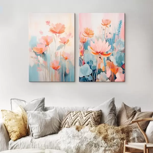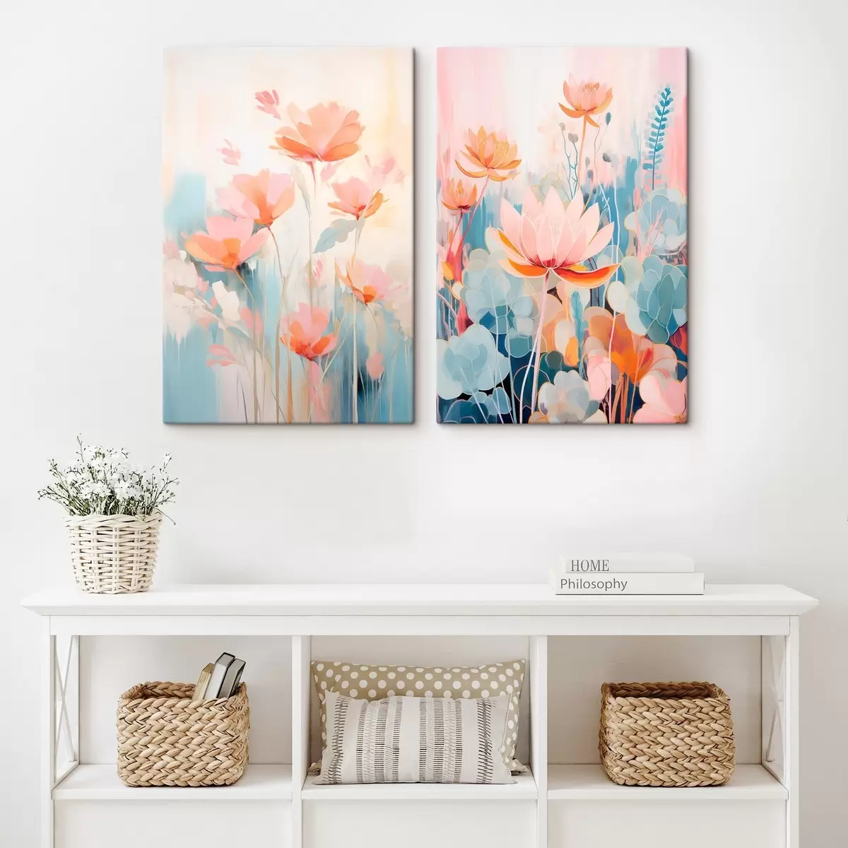 Wandbilder Aquarellharmonie von Blumen in einer rosa-blauen Farbpalette Art. m01084