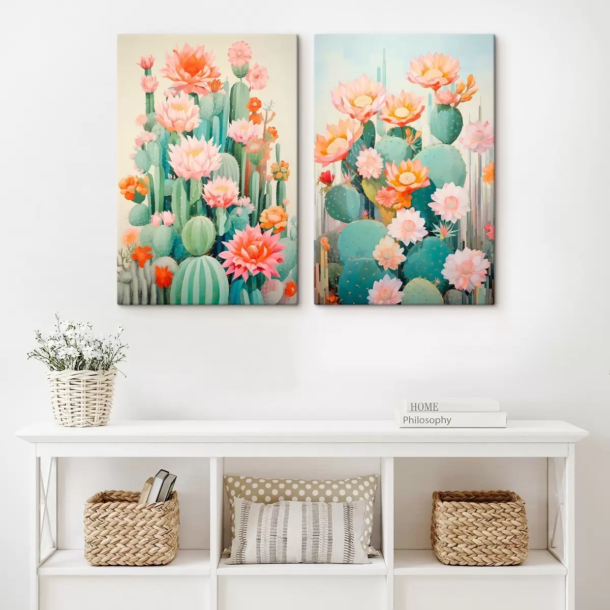Wandbilder Kakteen mit großen Blüten, Pastellfarben und einer ruhigen Ausstrahlung Art. m01086
