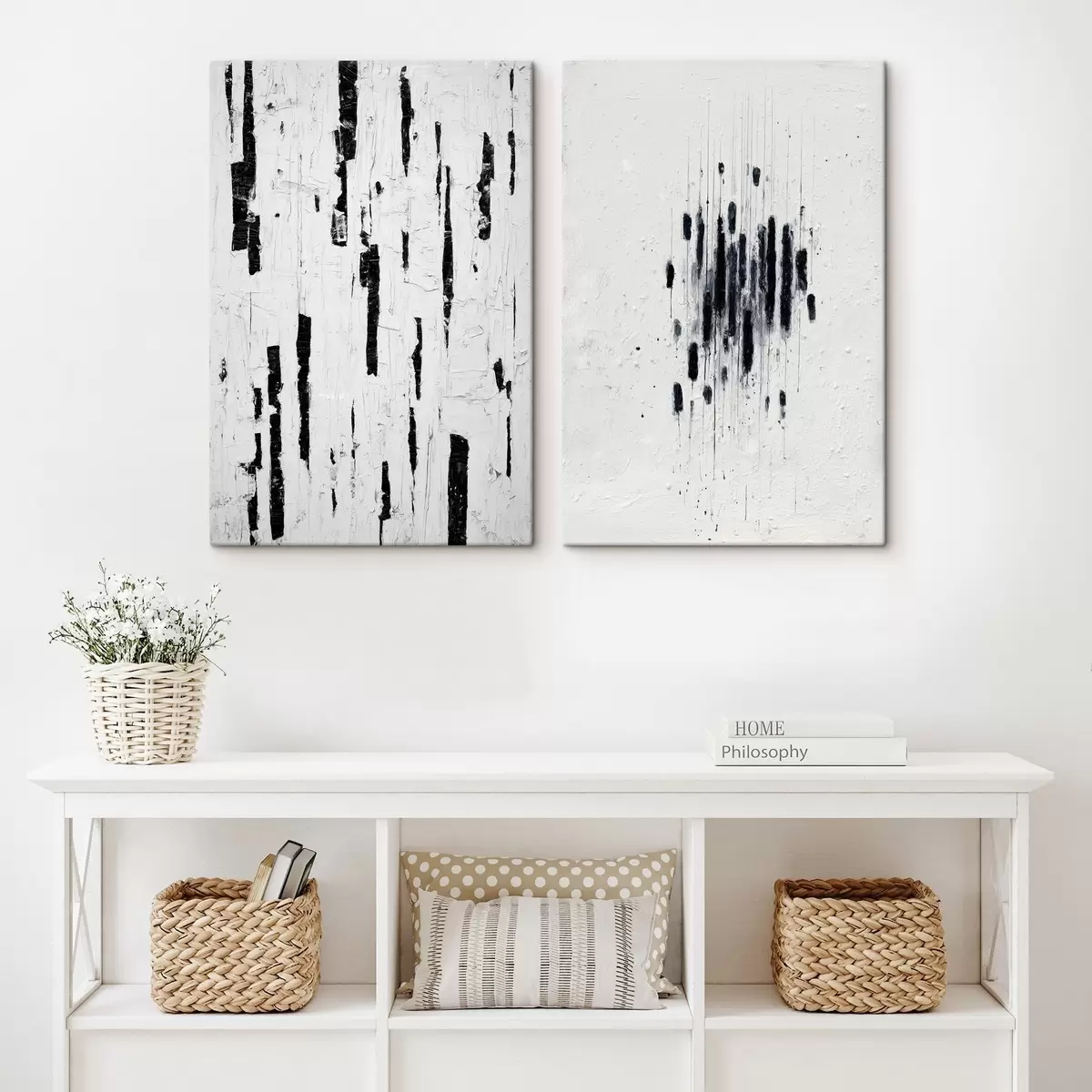 Wandbilder Abstrakte Kunst in Schwarz-Weiß-Tönen mit einer Imitation natürlicher Texturen m01097