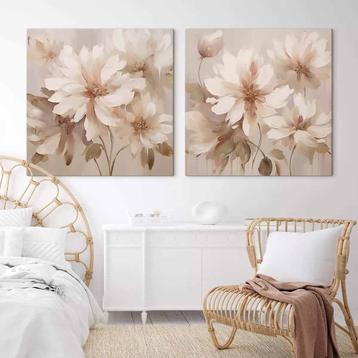Drei Materialtypen stehen zur Verfügung: Economic Canvas - ein dichtes und haltbares Material für den Digitaldruck, identisch mit Malerleinwand, wasserfeste Oberfläche, realistische Wiedergabe von Details, mittelkörniges Material. Premium Canvas - die Textur ähnelt der einer Malerleinwand (verwobene kleine Fäden). Weiche, detaillierte Wiedergabe des Bildes auf einer matten Oberfläche. Eco-Premium - hochwertiges Gewebe aus 100% Baumwolle. Dank der natürlichen Baumwollfasern ist das Material langlebig und verschleißfest. Hervorragende Farbwiedergabe und Detailtreue.