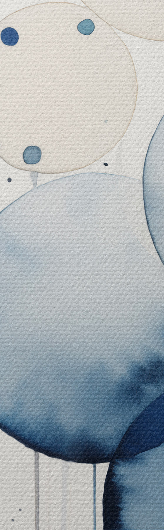 Wandbilder Abstrakte, strukturierte blaue und weiße Wasserfarbenkreise unterschiedlicher Größe vor weißem Hintergrund m01118