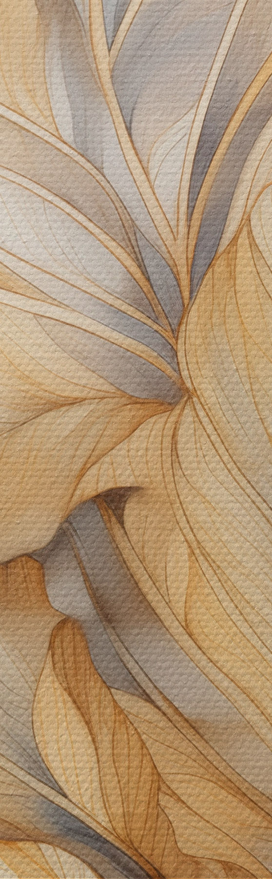 Wandbilder Abstrakte große, gelbe und braune Blätter mit komplexen Details vor einer Berglandschaft m01119