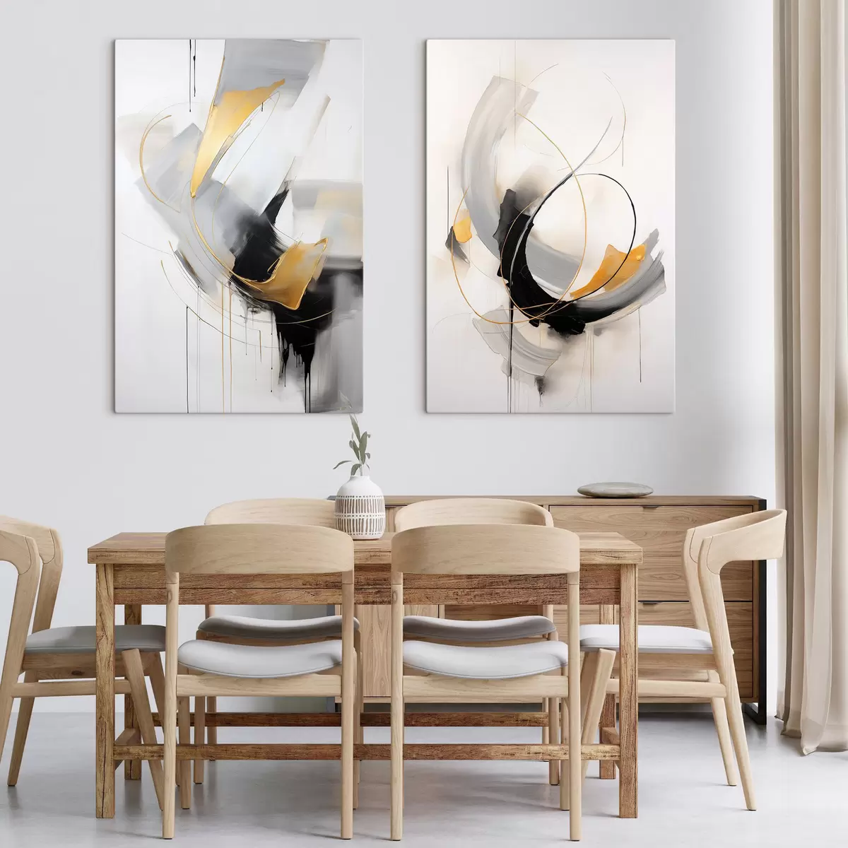 Wandbilder Abstrakte Malerei mit gelben, schwarzen und weißen Pinselstrichen, dynamischen Linien Art. m01125