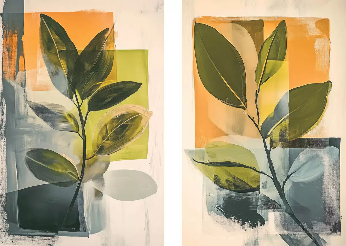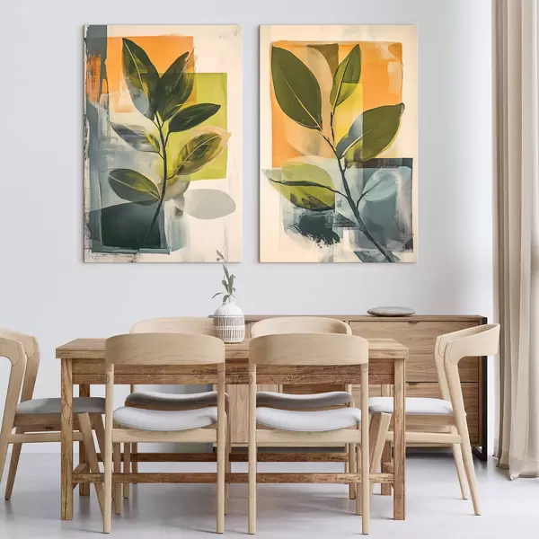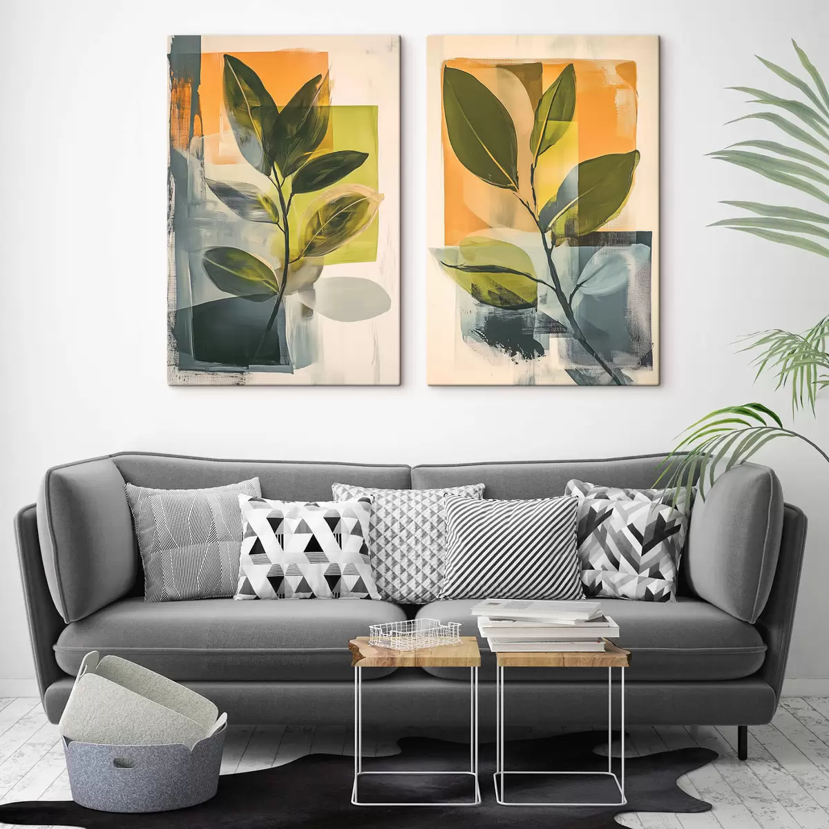 Wandbilder Zweige mit Blättern auf abstraktem Hintergrund Art. m01132