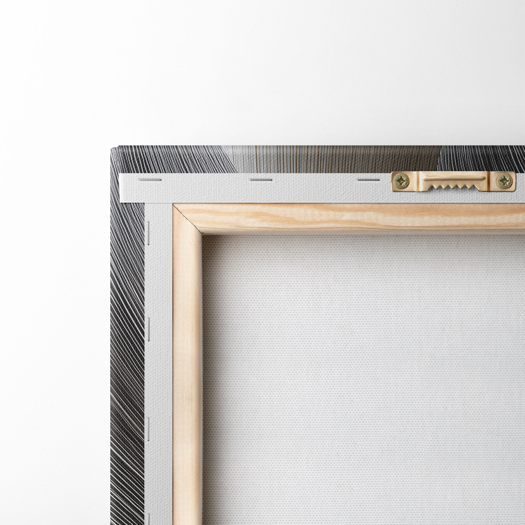 Sie können das Bild an Schrauben aufhängen. Dazu legen wir unseren Bildern Halterungen bei, mit denen Sie das Bild bequem aufhängen können.