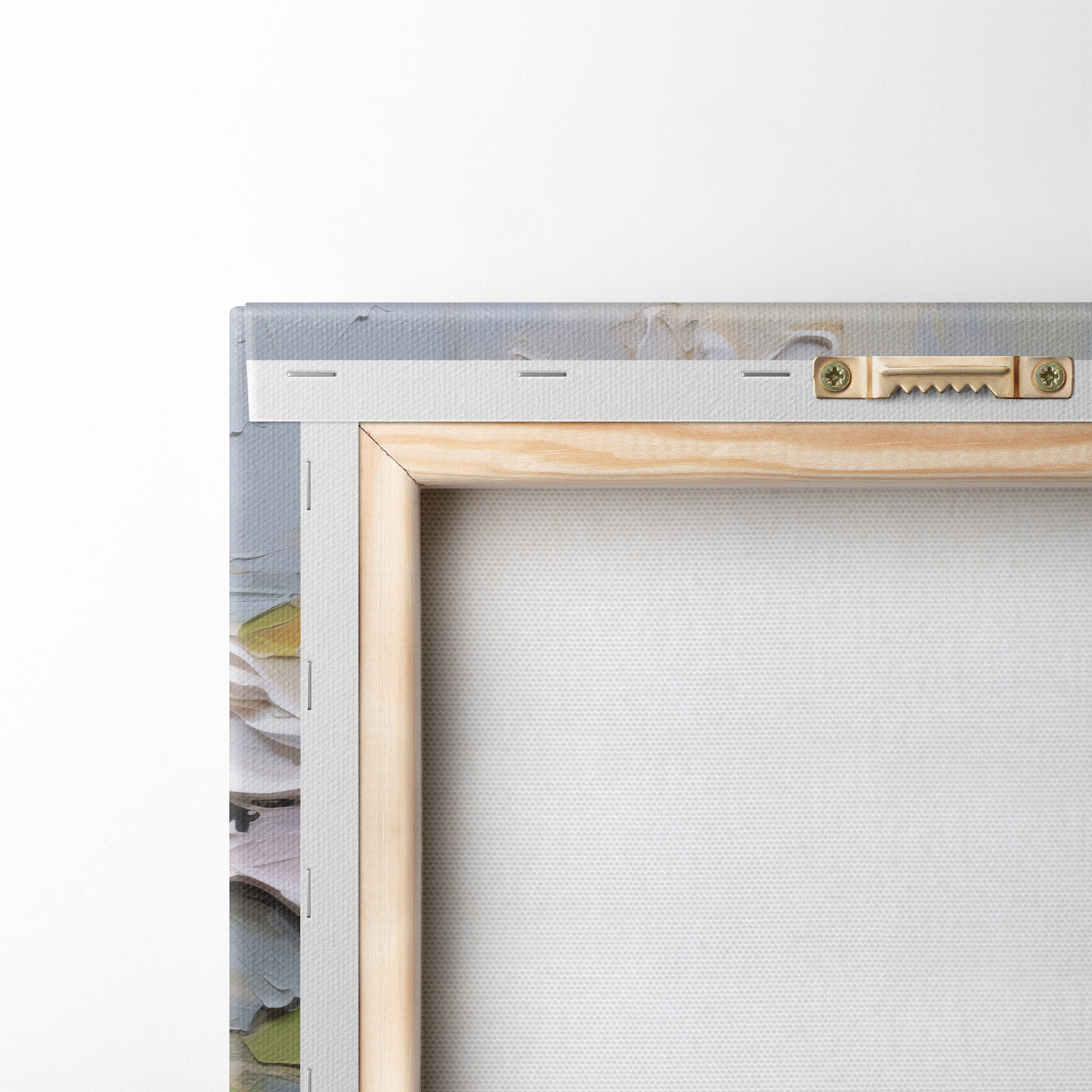 Um die Leinwand auf Keilrahmen zu spannen, ohne das Bild zu beschädigen, verwenden wir ein gespiegeltes Bild.