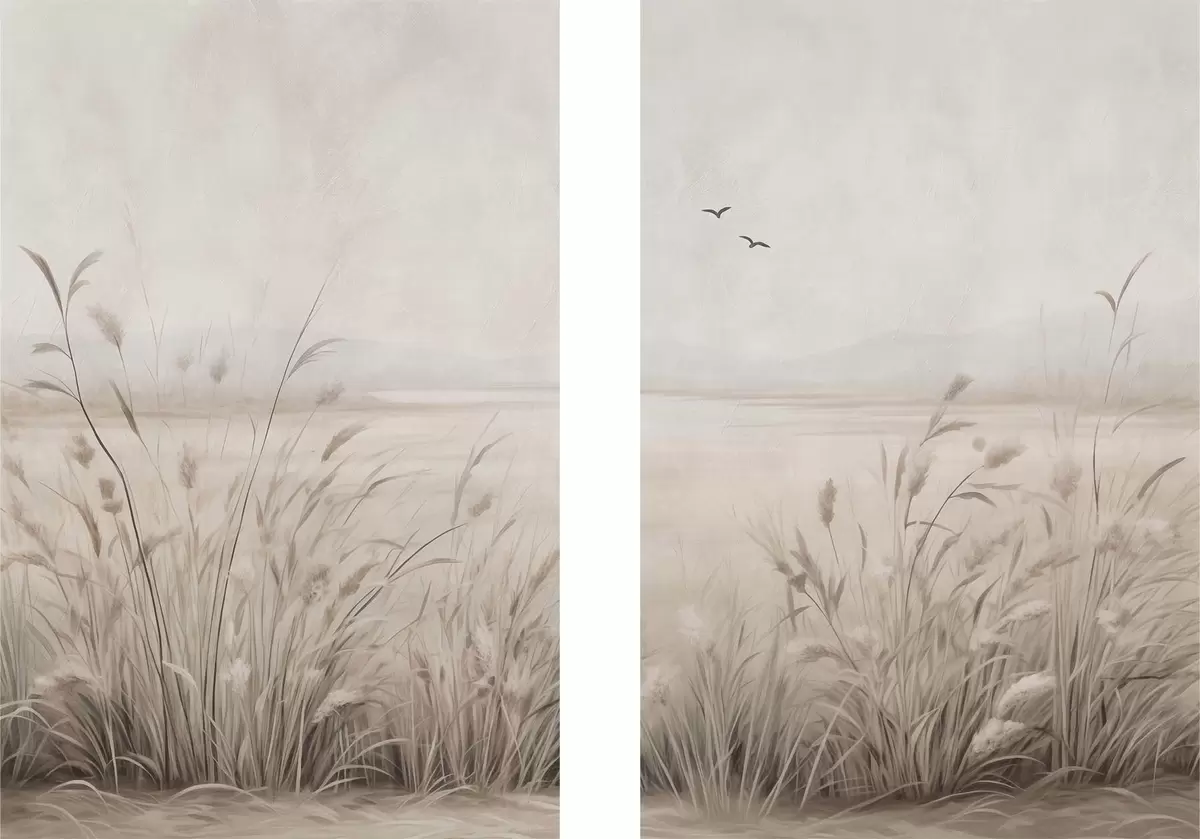 Wandbilder Wildblumen und Gras in sanften Pastelltönen Art. m30022