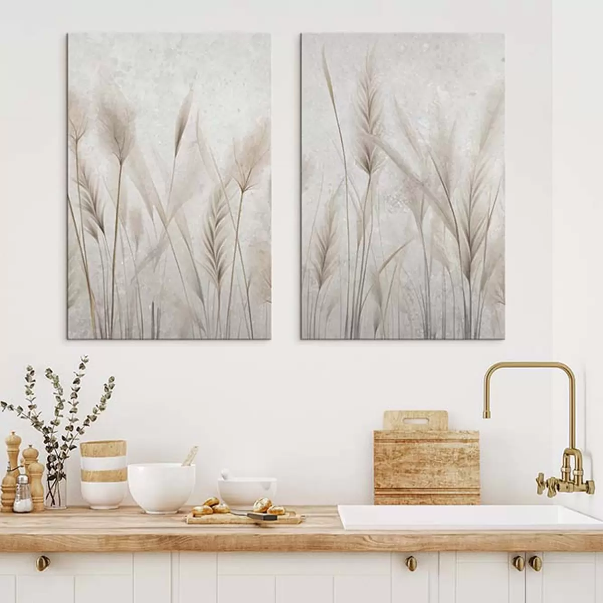 Wandbilder Ährchen und Pompasgras auf einem gealterten Hintergrund Art. m30024