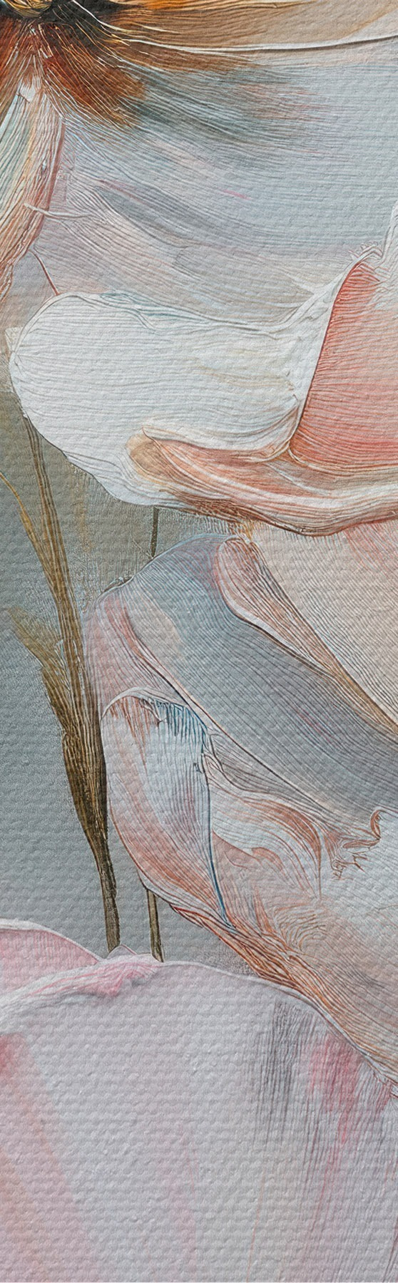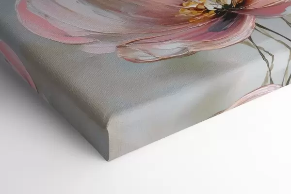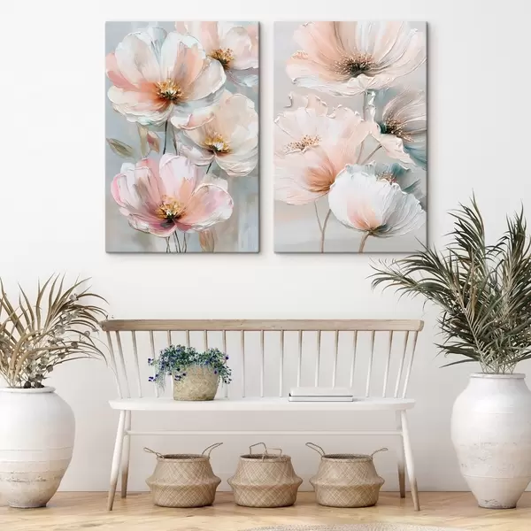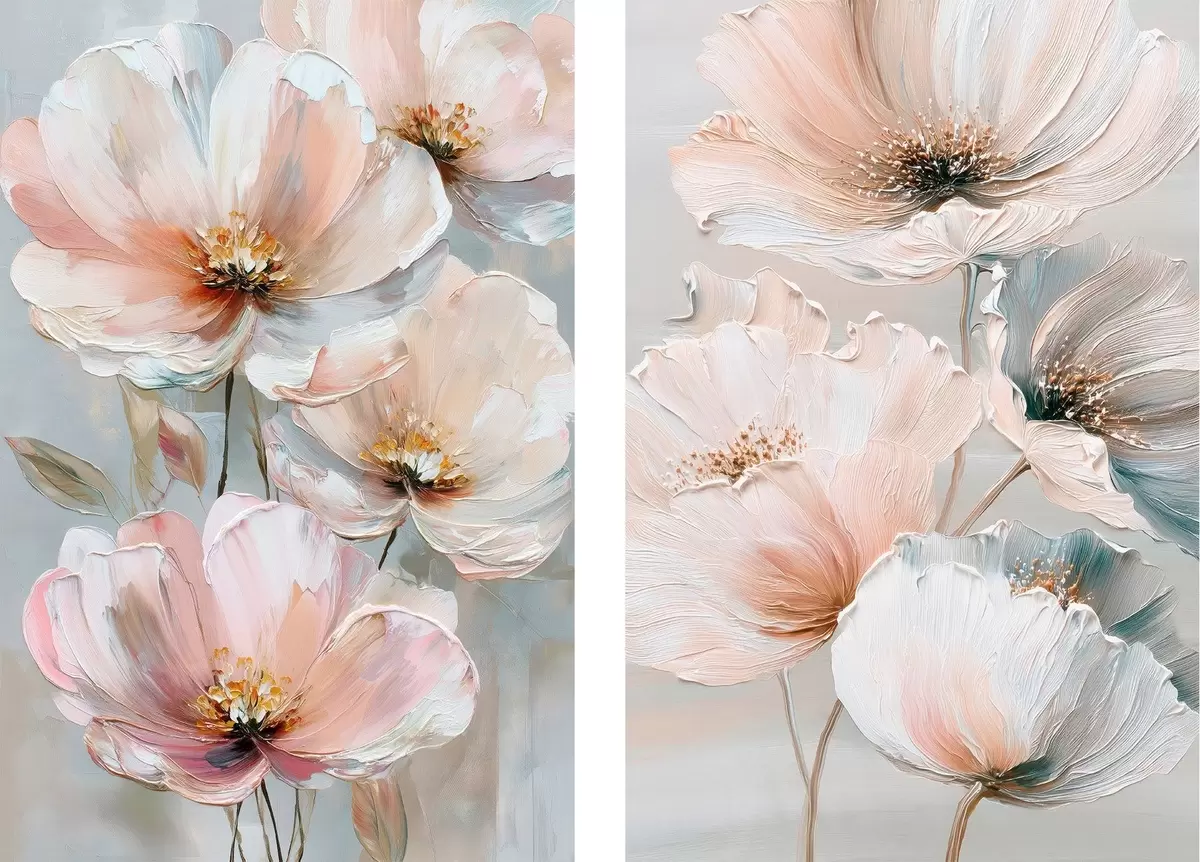 Wandbilder Blumendiptychon in einer beige-korallenfarbenen Farbpalette im Stil eines Ölgemäldes Art. m30029