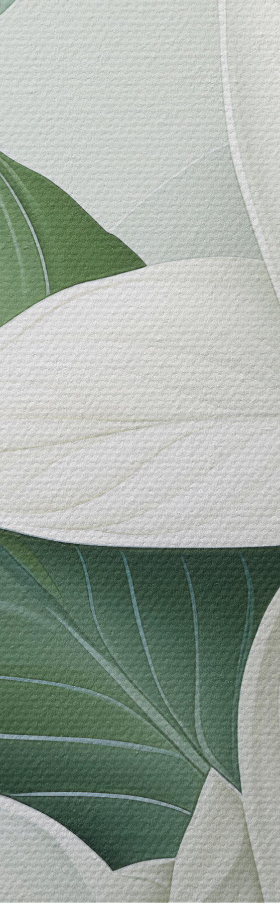Wandbilder Weiße Blumen mit grünen Blättern, pastellfarbener Hintergrund m30055