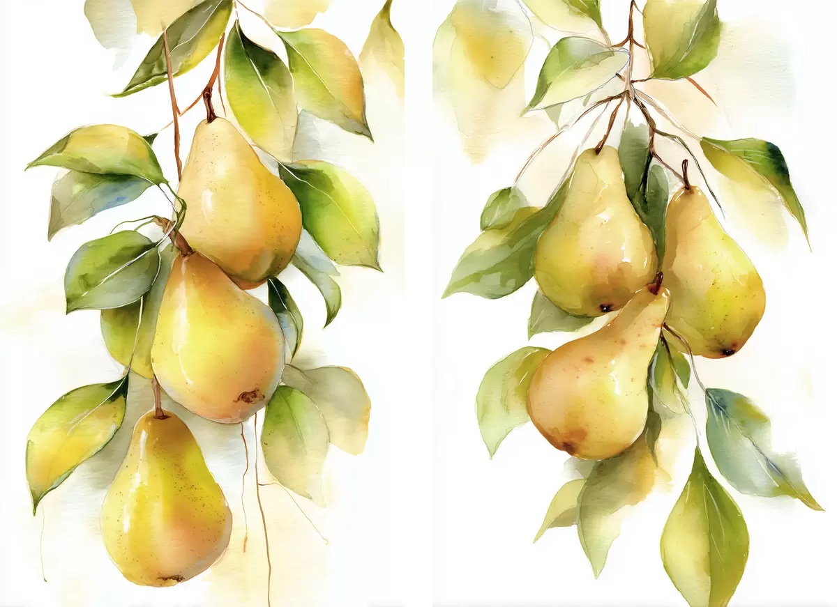 Wandbilder saftige gelbe Birnen im Aquarellstil Art. m30088