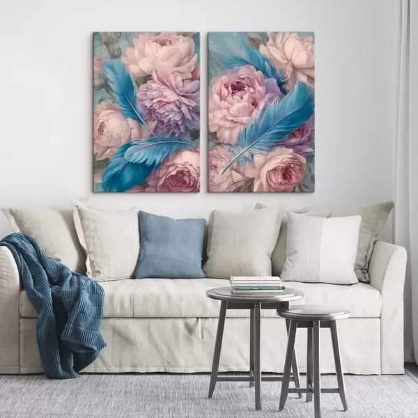 Wandbilder Federn zwischen Pfingstrosen Art. m30092