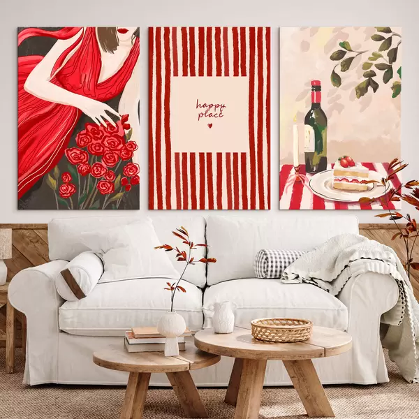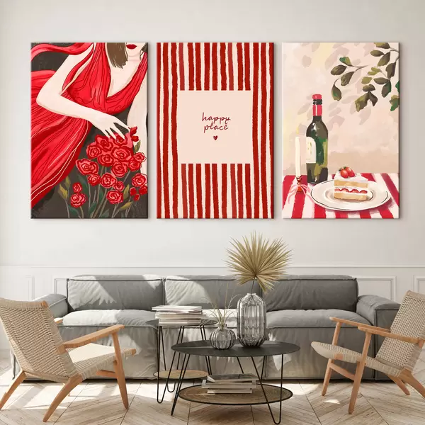 Wandbilder Frau mit Rosen, gestreiftem Poster und Tisch Art. m30099