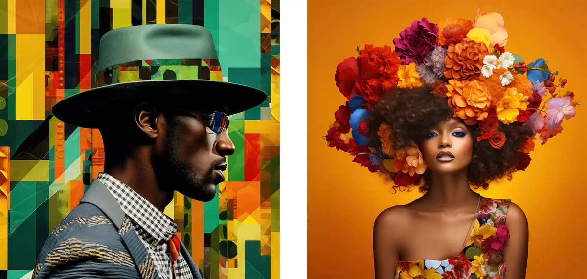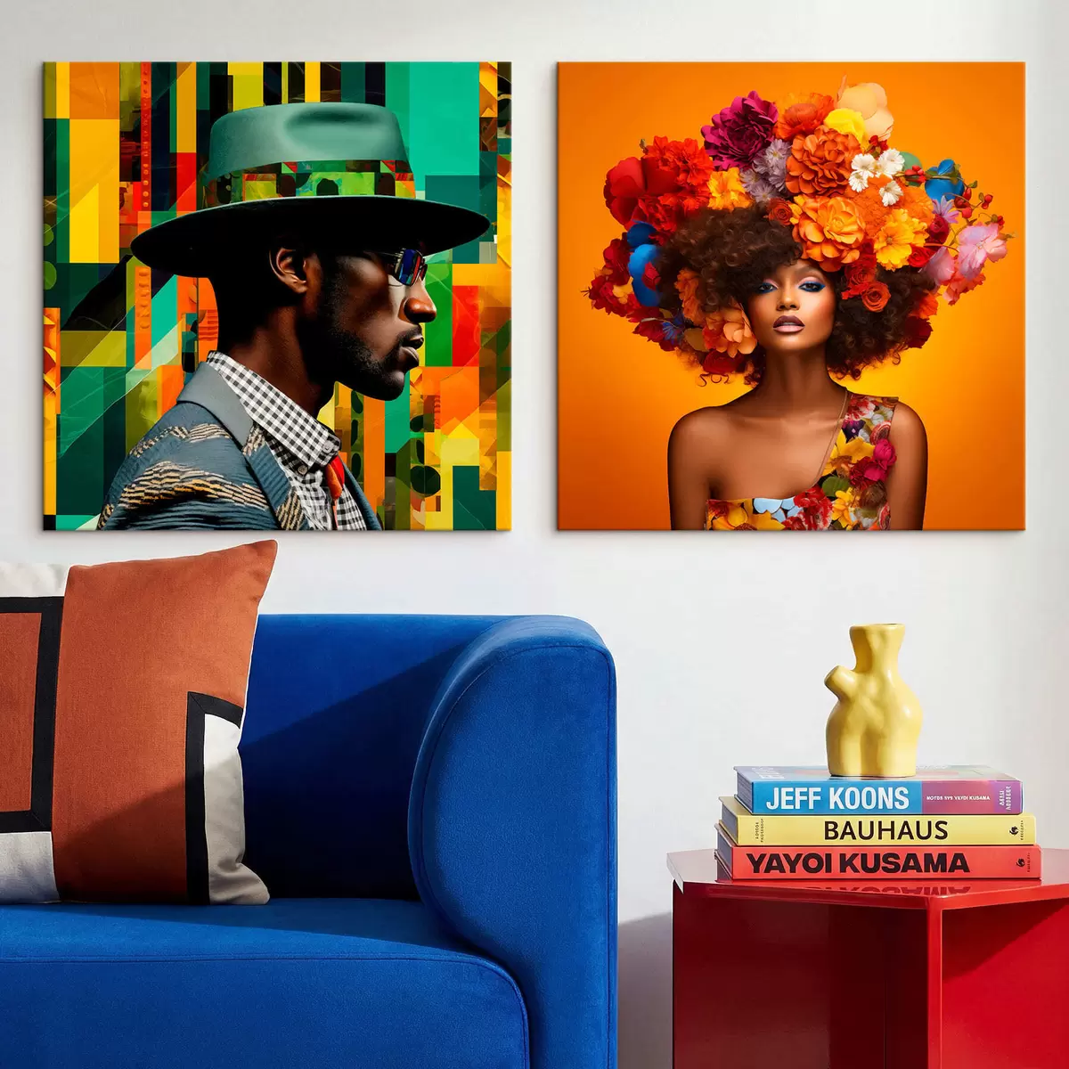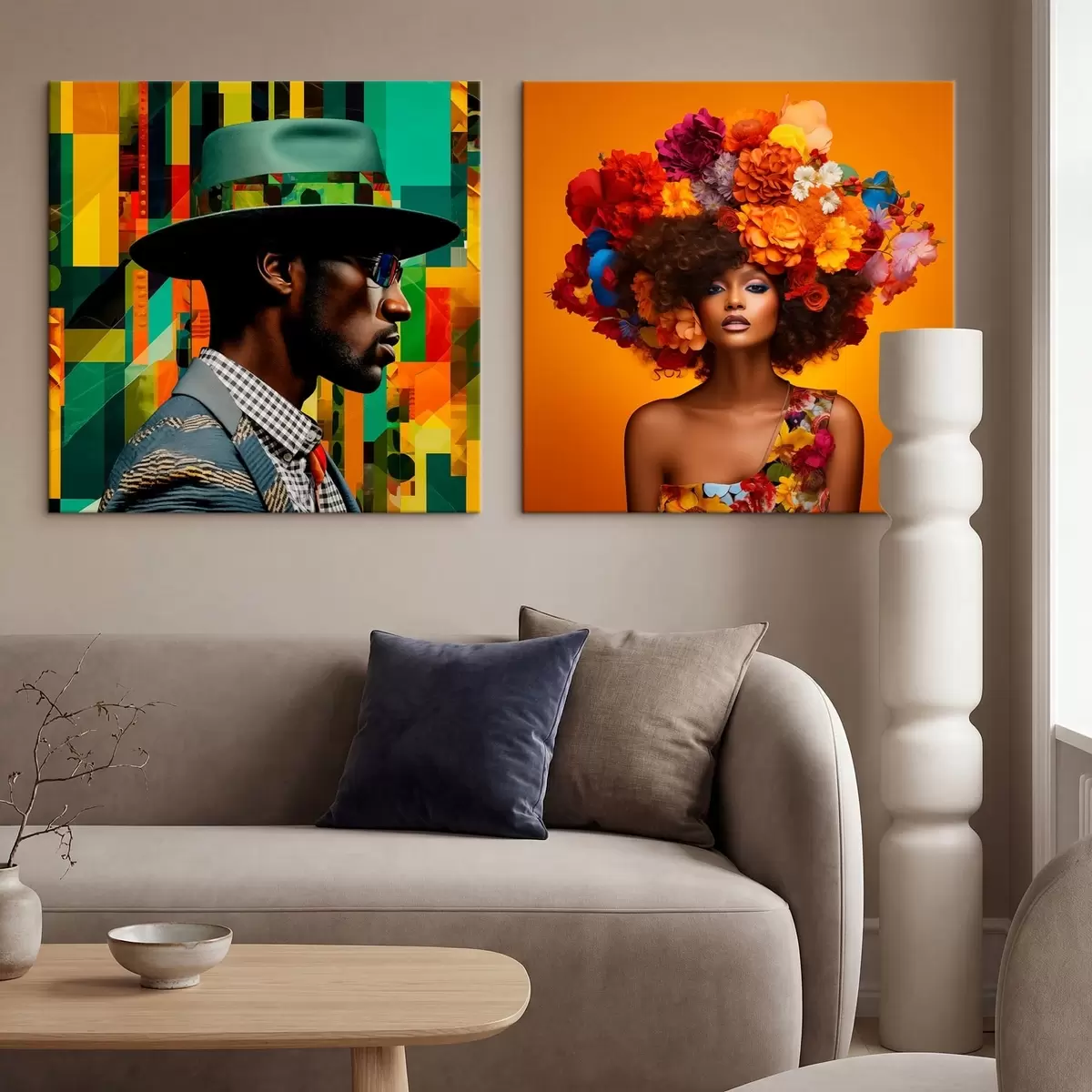 Wandbilder Porträt eines Mannes mit Hut und einer Frau mit großem Blumenkranz Art. m30102