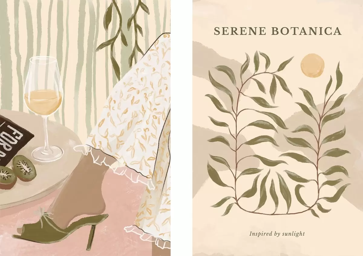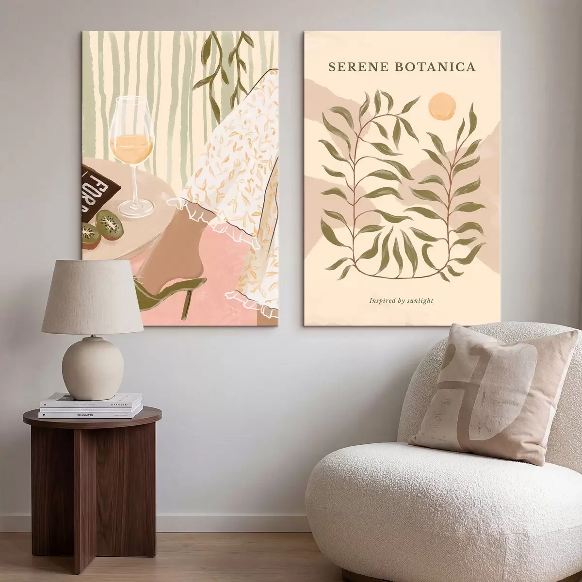 Wandbilder Weinglas und botanisches Poster in der Nähe Art. m30106