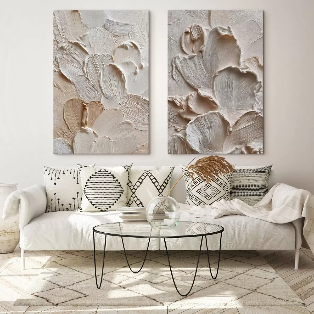 Drei Materialtypen stehen zur Verfügung: Economic Canvas - ein dichtes und haltbares Material für den Digitaldruck, identisch mit Malerleinwand, wasserfeste Oberfläche, realistische Wiedergabe von Details, mittelkörniges Material. Premium Canvas - die Textur ähnelt der einer Malerleinwand (verwobene kleine Fäden). Weiche, detaillierte Wiedergabe des Bildes auf einer matten Oberfläche. Eco-Premium - hochwertiges Gewebe aus 100% Baumwolle. Dank der natürlichen Baumwollfasern ist das Material langlebig und verschleißfest. Hervorragende Farbwiedergabe und Detailtreue.